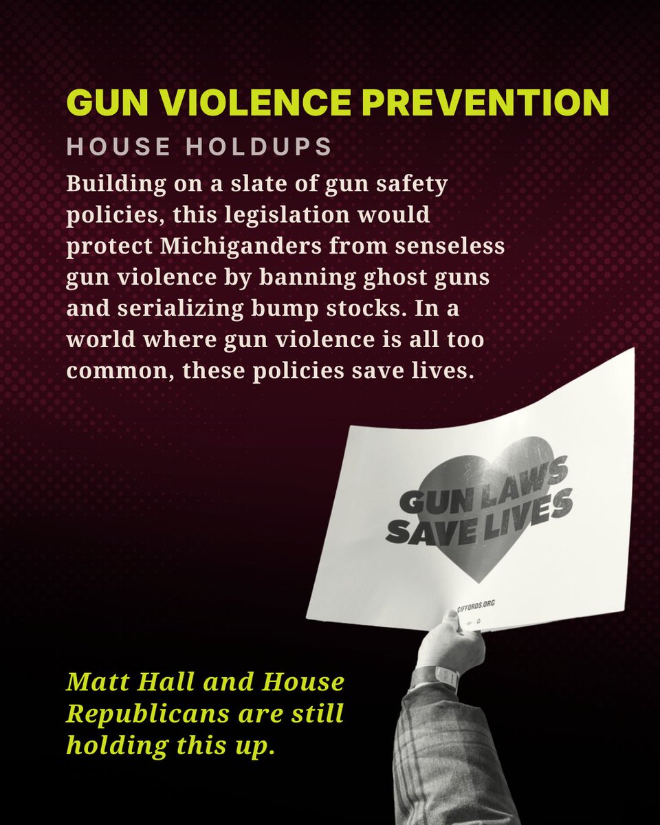This legislation is currently collecting dust as Matt Hall and House Republicans prioritize playing politics over Michiganders safety.